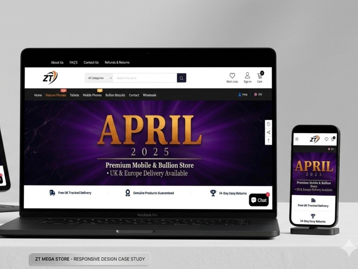 ZT Mega Store is a UK-based ecommerce platform developed to sell mobile phones alongside high-value investment products such as gold bullion coins and silver coins.